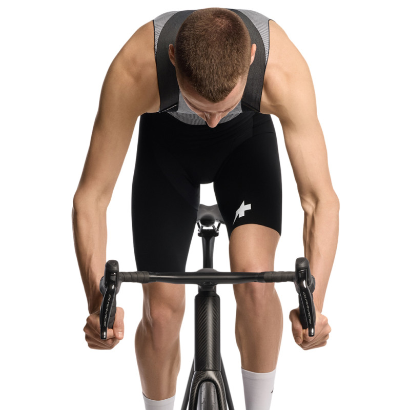 An den Beinen kommt der brandneue Type.959 Kompressor zum Einsatz, das kompressivste Material, das ASSOS je entwickelt hat. Es umhüllt die wichtigsten Muskelgruppen, um Mikrovibrationen zu reduzieren, Ermüdung bei längeren Belastungen zu begrenzen und die biomechanische Effizienz bei hoher Intensität zu verbessern. Integrierte rutschfeste Fäden (ELECTRIFIED Grip) sorgen für perfekten Halt ohne Silikonbänder oder zusätzliche Materialauflagen.