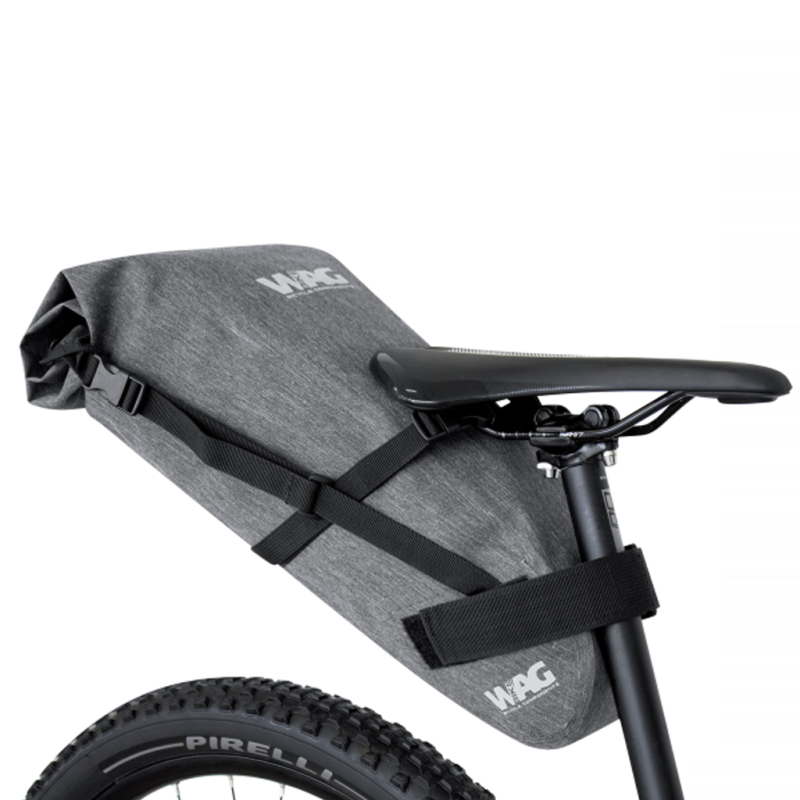 Die Bikepacking-Satteltasche Wag Bike Saddlebag 15L ist für Fahrradabenteurer konzipiert, die auf langen Touren auf der Straße, auf Schotterwegen oder mit dem Mountainbike viel Stauraum, Wasserdichtigkeit und Stabilität suchen. Mit ihrem großzügigen Fassungsvermögen von 15 Litern bietet sie Platz für Kleidung, Biwakausrüstung oder Reparaturzubehör, ohne die Balance des Fahrrads zu beeinträchtigen.Ihr 100 % wasserdichtes Design schützt Ihre Sachen wirksam vor Regen, Schlamm und Spritzwasser. Der Rollverschluss mit doppeltem Clip sorgt für optimale Kompression der Ladung und perfekte Wasserdichtigkeit. Dank ihres Befestigungssystems mit Clips und Klettverschluss am Sattel und an der Sattelstütze lässt sie sich leicht anbringen und bleibt auch auf unebenem Gelände stabil. Eine reflektierende Schlaufe ermöglicht die Anbringung einer Rückleuchte für mehr Sicherheit. Der ideale Begleiter für Ihre Bikepacking-Abenteuer. Technische Daten: - Einsatzbereich: Bikepacking, Langstrecken-Touren, Gravel, Mountainbike