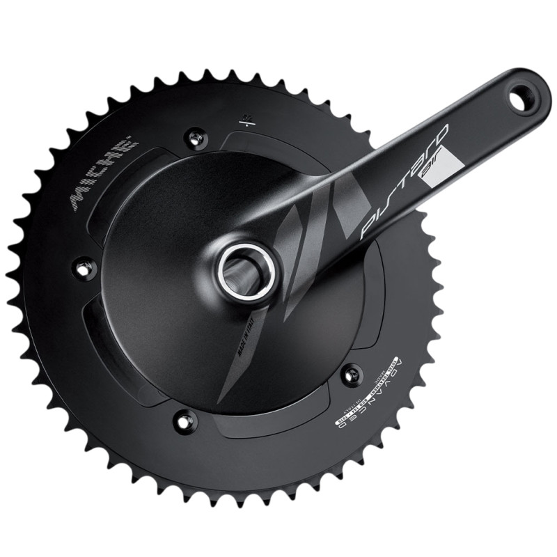 Das Miche Pistard Air ist das Referenz-Bahnrad-Kurbelgarnitur der italienischen Marke. Es besteht aus geschmiedeter und CNC-gefräster Legierung und vereint strukturelle Steifigkeit mit einer hochwertigen Verarbeitung, um den Anforderungen des Bahnradsports sowohl im Wettkampf als auch im Training gerecht zu werden. Mit einem Gewicht von 725 Gramm (ohne Tretlagergehäuse, bei einem 44er-Kettenblatt und 165-mm-Kurbeln) bietet es ein hervorragendes Verhältnis von Gewicht zu Festigkeit für den Einsatz im Velodrom. Die 24-mm-Achse aus Spezialstahl garantiert eine direkte und verwindungsfreie Kraftübertragung, was auf der Bahn unerlässlich ist, wo jedes Watt zählt. Der Achsabstand von 42,5 mm sorgt für eine optimale Kettenführung bei Bahnrädern, während der Q-Faktor von 138 mm den Wettkampfstandards entspricht. Das BCD-144-System mit vier gleichmäßig verteilten Löchern ist der Miche-Standard für die Bahn. Es ermöglicht die Verwendung einer extrem breiten Auswahl an Kettenblättern von 44 bis 70 Zähnen und deckt sowohl Sprintwettbewerbe als auch Langstreckenrennen oder den Kilometer ab. Die Kurbeln sind in 5 Längen erhältlich: 165, 167,5, 170, 172,5 und 175 mm. Die Miche Pistard Air ist in Schwarz erhältlich. Sie wird mit einer Bedienungsanleitung geliefert. Das Tretlager ist nicht im Lieferumfang enthalten. Technische Daten: - Disziplin: Bahnradfahren