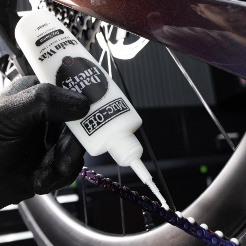 Mit mehr als einem Jahrzehnt an Innovation hat die Marke Muc-Off ihre Formeln verfeinert und perfektioniert, um noch mehr kleine Leistungssteigerungen herauszuholen. Mit seinem Dark Matter Wax in der 50-ml-Version verspricht Muc-Off, die Zukunft der Kettenschmierung zu revolutionieren und Ihren Antrieb in eine neue Dimension zu katapultieren. Getestet in über 1.000 Stunden im Labor und auf Zehntausenden von Kilometern unter realen Bedingungen (unter anderem mit Profiteams wie EF Education), revolutioniert diese tropffreie Formel die Kettenschmierung. Mit einem extrem niedrigen Reibungskoeffizienten von 0,098 und minimalem Verschleiß (20 × 10?³ µm³) bietet es eine reibungslose Kraftübertragung, eine beeindruckende Wattersparnis und eine außergewöhnliche Haltbarkeit. Die Formel basiert auf einer Mischung hochraffinierter Wachse, darunter ein biologisch abbaubares Wachs pflanzlichen Ursprungs, und bildet einen trockenen, langanhaltenden Schutzfilm, der Schmutz, Staub und Feuchtigkeit aktiv abweist. Ihr Antrieb bleibt länger sauber, leise und schnell, bei minimalem Wartungsaufwand. Ob im Rennen oder im Training – dieses Muc-Off Dark Matter Wax 50 ml garantiert lang anhaltenden Schutz. Die Wachsbeschichtung reduziert die Reibung drastisch und verlängert so die Lebensdauer Ihrer Kette, Kassette und Kettenblätter. Dieses Muc-Off Dark Matter Wax 50 ml ist daher eine lohnende Investition für alle anspruchsvollen Radfahrer. Anwendungstipps: Muc-Off empfiehlt, die Flasche vor Gebrauch gut zu schütteln. Außerdem muss der Antrieb (Kette, Kassette, Kettenblätter, Kettenräder) gründlich gereinigt und vor dem Auftragen vollständig getrocknet werden. Tragen Sie einen Tropfen Wachs auf jedes Kettenglied auf, beginnend mit dem Schnellverschluss. Es wird empfohlen, zwei vollständige Umdrehungen der Kette zu wiederholen. Schalten Sie anschließend langsam durch die Gänge und bestreichen Sie dabei jedes Ritzel der Kassette. Lassen Sie das Wachs vor der Nutzung mindestens 12 Stunden trocknen (oder 24 Stunden bei kühlem Wetter). Sobald das Wachs abgenutzt ist, d. h. wenn die Kette Geräusche macht, wischen Sie sie mit einem Mikrofasertuch ab und tragen Sie das Wachs bei trockenem Wetter auf. Bei feuchtem Wetter ist es sinnvoll, die Kette direkt nach dem Gebrauch zu reinigen und zu schmieren, um eine optimale Leistung zu erzielen. Technische Daten: - Inhalt: 50 ml