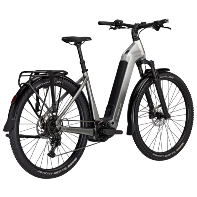 Dieses Focus Aventura 2 6.7 Silver gilt als ein Chamäleon, das sich optimal an seine Umgebung anpasst. Wenn Sie eine Radtour unternehmen möchten, ist es dank seines Gepäckträgers, seiner Schutzbleche, seines Ständers und seiner Beleuchtung genau das Richtige für Sie. Und wenn Sie einfach nur in der Stadt zur Arbeit fahren oder Einkäufe erledigen möchten, ist es ebenfalls die ideale Wahl. Bei all Ihren Abenteuern können Sie sich auf jeden Fall auf den Bosch Performance Line-Motor verlassen, der dank seines Drehmoments von 75 Nm eine Unterstützung bis zu 25 km/h garantiert. Der im Tretlagerbereich integrierte Motor fügt sich perfekt in den Aluminiumrahmen ein. Der 540-Wh-Bosch-Powertube-Akku, der im Unterrohr untergebracht und einfach zu entnehmen ist, sorgt dafür, dass Sie so lange wie möglich fahren können. Dieses E-Bike verfügt über eine Shimano Cues 9-Gang-Schaltung. Die Mach1 Trucky32-Laufräder und die Schwalbe Jonny Watts-Reifen in der Größe 29 x 2,35 sorgen für optimale Leistung auf jedem Untergrund. Dank all dieser Eigenschaften wird dieses Focus Aventura 2 6.7 Silver zu Ihrem besten Begleiter für all Ihre Abenteuer auf zwei Rädern. Technische Daten: Rahmen: