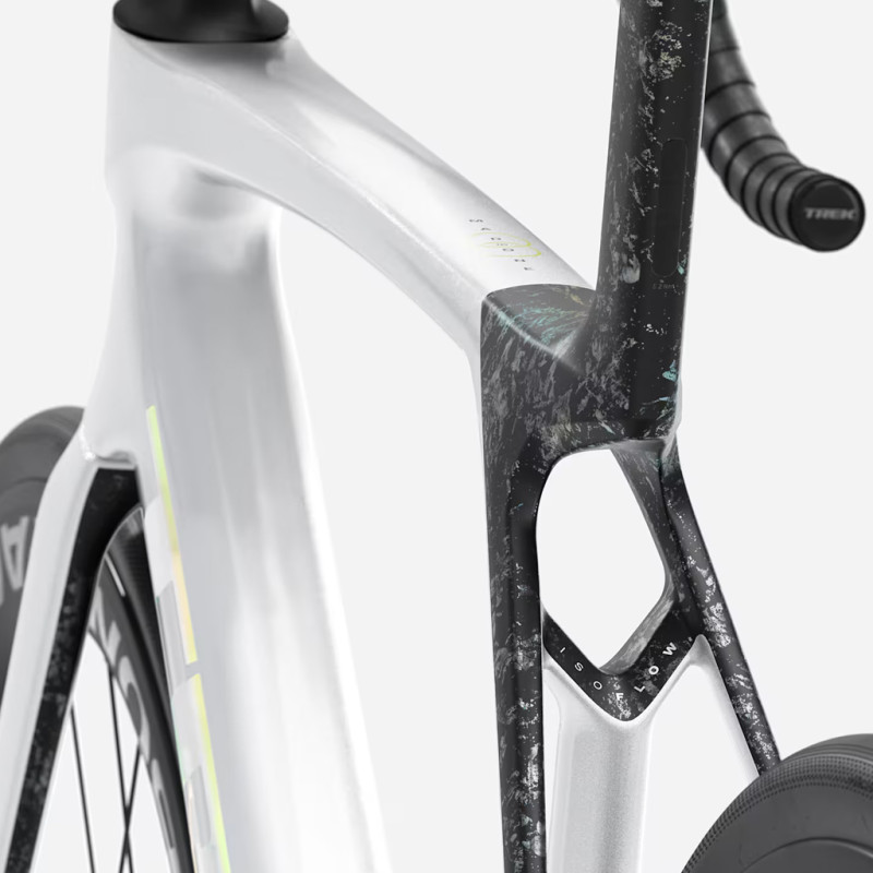 - Gabel: Madone 8. Gen. vollcarbon, konisches Carbon-Steuerrohr, interne Bremszugverlegung, Scheibenbremsen mit Flat-Mount-Befestigung, 12x100 mm geriffelte Steckachsen