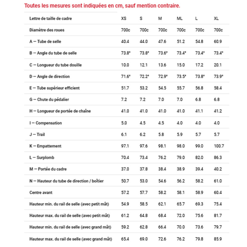 - Vorbau: Trek RCSPro - Winkel -7° (Länge : 80mm für Größe XS / 90mm für Größe S, M / 100mm für Größe ML, L / 110mm für Größe XL)