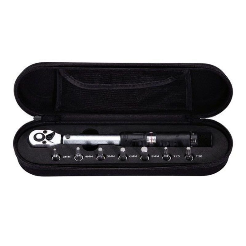 - Adjustable by turning the handle. - Integrated release mechanism. - Range: 2 - 14 Nm.- Case including tightening keys: 3, 4, 5, 6, 8 and 10 mm hex keys, T25 tightening key. - Computer-adjusted precision. - Can be recalibrated.- Brand: BBB