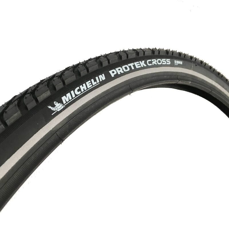 This bicycle tyre is just as comfortable on the road as it is on trails. The Protek Cross FR is perfect for mounting on a classic gravel or city bike, but also on an e-bike. It meets the requirements of this new type of bike and its very specific characteristics. The 3D notching of the tread in three directions ensures high mobility of the studs for maximum grip and versatility.The central part of the tyre has a design that allows for comfortable riding on tarmac. This "All Terrain" profile allows for use on all types of terrain and in all weather conditions: on-road and off-road. This Protek Cross version is equipped with 1mm reinforcement to effectively combat everyday punctures. The sidewall of the tyre features a reflective strip to increase your visibility in urban traffic.