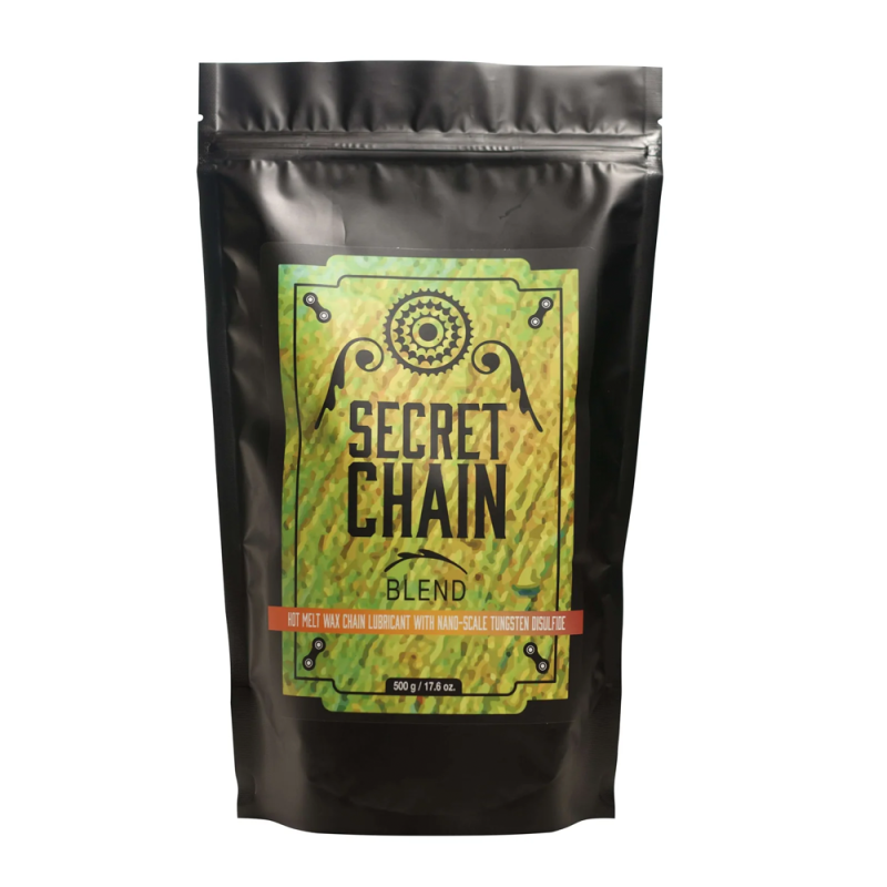 Another highlight is that Secret Chain Blend is the only hot wax lubricant that contains a specially adapted and compatible drip wax. This drip wax can be used to "top up" the wax as needed, extending the period between hot wax applications and ensuring the quietest possible operation of the drivetrain.Ultimately, using the combination of Secret Chain Blend and Secret Chain Lube can significantly extend the life of chain and drivetrain components, up to 10 times longer. An essential breakthrough for cyclists seeking performance and durability. Technical specifications: - Saves up to 8 W - 500 g pouch - Clean to the touch on the chain- Clean to the touch on the chain