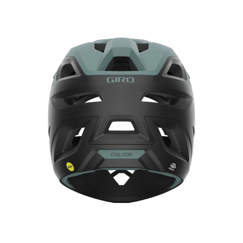 Discover the Giro Coalition Spherical full-face helmet, designed for downhill enthusiasts, the ultimate choice for intrepid adventurers. With 23 vents, it offers comfort and safety, and weighs only 800g. The In-Mold construction, with a polycarbonate outer shell bonded to the EPS inner shell, offers increased strength while ensuring optimal ventilation. Equipped with the Spherical MIPS safety system, this helmet goes beyond traditional standards. The mobile EPP and EPS shells absorb shocks at all speeds, offering optimal impact protection. The flexible yet rigid Pebax Halo chin guard and elastomer bushings integrated into the headband effectively absorb shocks for maximum safety. Other features are also available, such as Ionic+ cheek pads with a snap-button system for emergencies. The FIDLOCK ensures a secure and easy closure. Compliant with American testing standards for downhill and BMX helmets, this helmet gives you the peace of mind you need to ride at high speeds.Technical specifications: - 4 colours: matte black, sage green, matte white/grey, khaki green - Sizes (cm): 51-55, 55-59, 59-63- Spherical technology, powered by the MIPS system
