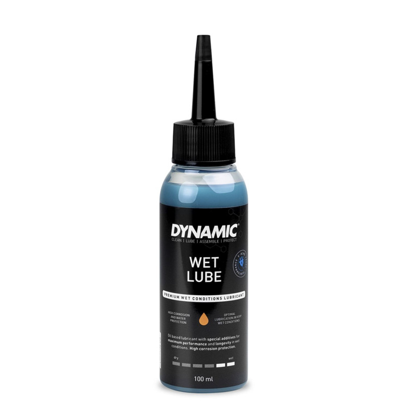 Dynamic Wet Lube chain lubricant is specially designed to deliver optimal performance in wet and muddy environments. Its thick, viscous formula maintains continuous lubrication even in rain, snow or muddy terrain. Thanks to its highly resistant composition, Dynamic Wet Lube adheres perfectly to the chain and forms a protective barrier against the elements. It prevents water infiltration and protects against rust, even during long rides in difficult conditions. Its viscous texture also ensures prolonged lubrication. Technical specifications - Container: 100ml- Designed to withstand wet and muddy conditions
