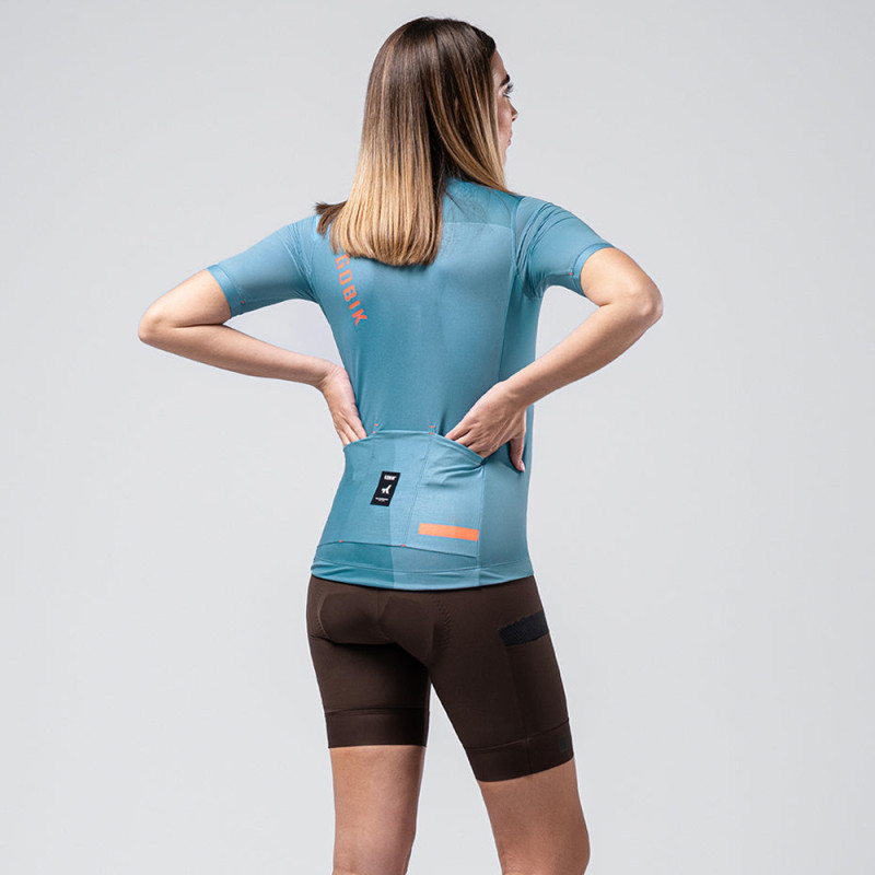 Le maillot de vélo à manches courtes Gobik pour femme a été conçu pour allier performance et confort. Son tissu doux et extensible assure une coupe classique, s’adaptant à toutes les silhouettes pour offrir un confort optimal lors des sorties à vélo. Les manches sont dotées de micro-perforations et d'un tissu léger et respirant, garantissant une ventilation optimale.