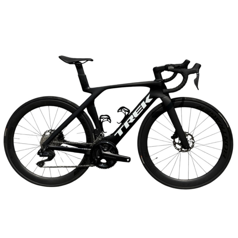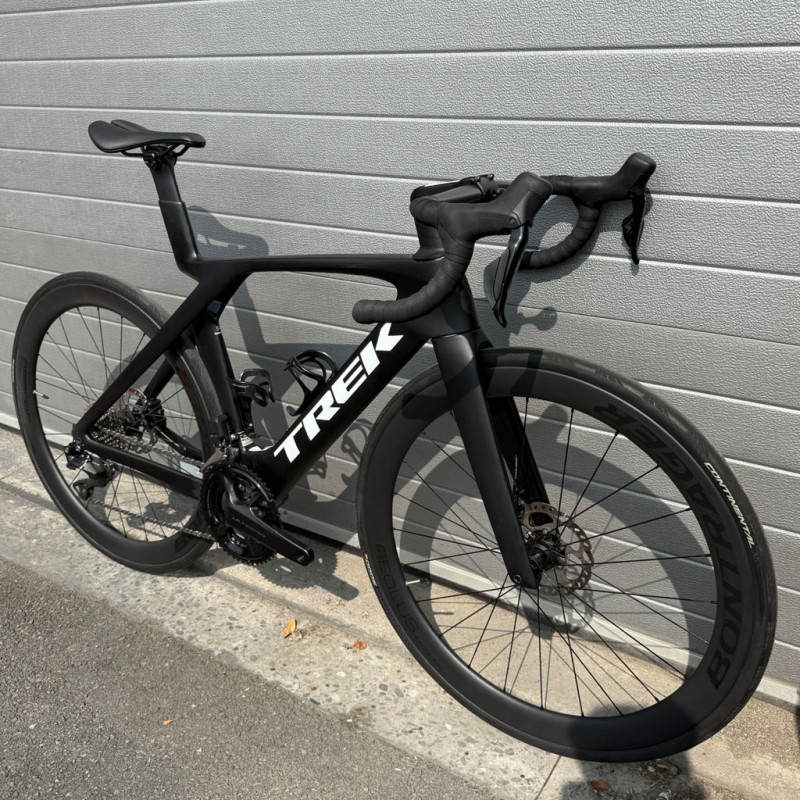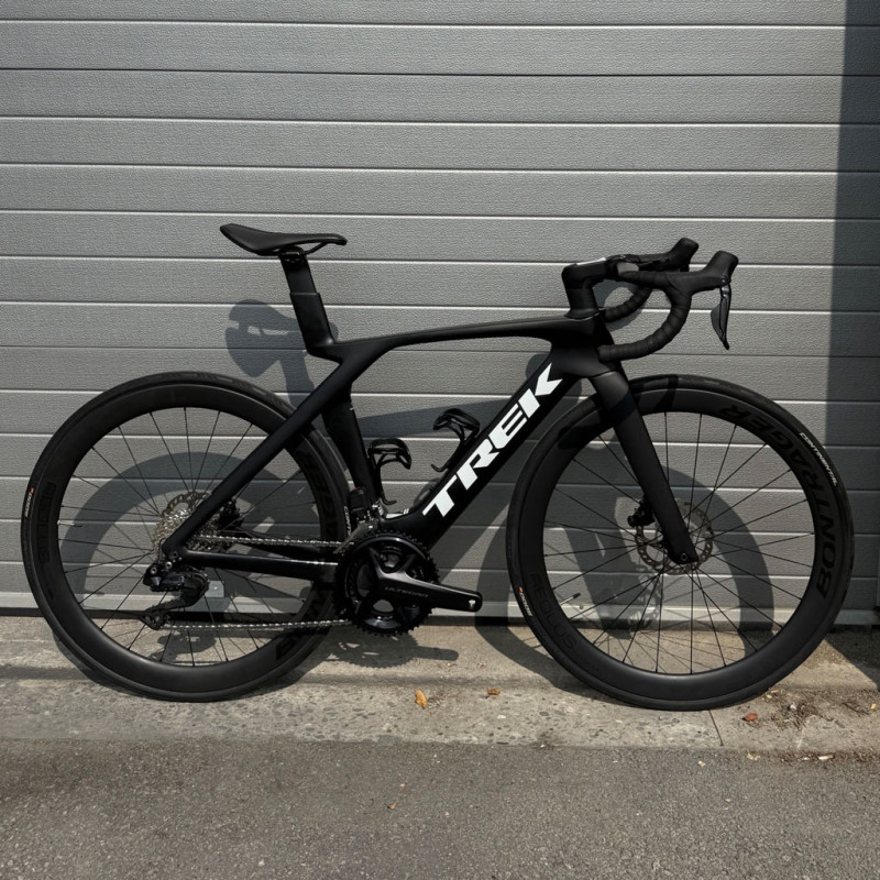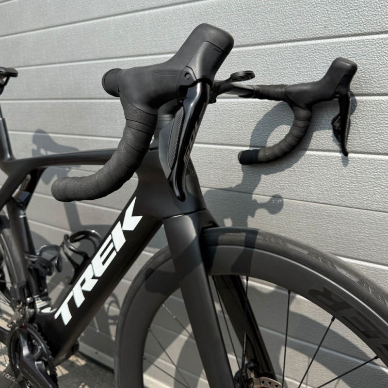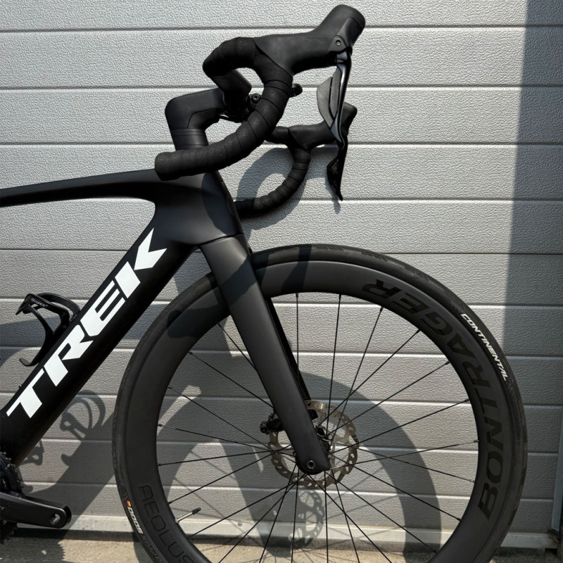 The Trek Madone SL6 combines aerodynamic performance, comfort and precision. Designed for discerning cyclists, it embodies the hallmarks of a high-end road bike with its carbon frame, Shimano 105 Di2 12-speed drivetrain and Bontrager Aeolus Elite 50 wheels. Every acceleration feels smoother and every descent more stable thanks to balanced geometry and high-performance disc brakes. This bike has been fully refurbished by our expert mechanics, ensuring it is in optimal working order. With new parts (handlebar tape, chain, tyres, brake pads) and in very good overall condition, it offers a riding experience close to new, at a very affordable price. Ideal for road cycling enthusiasts looking for a fast, precise and aerodynamic bike for training or competition. -