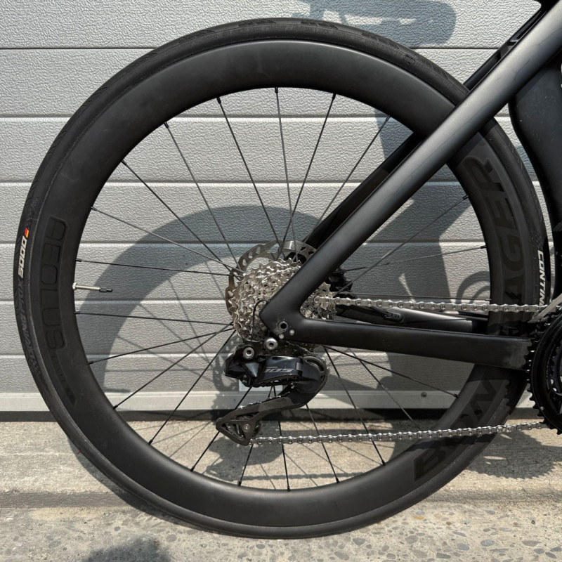 - Rear derailleur: Shimano 105 Di2 12-speed Brakes: