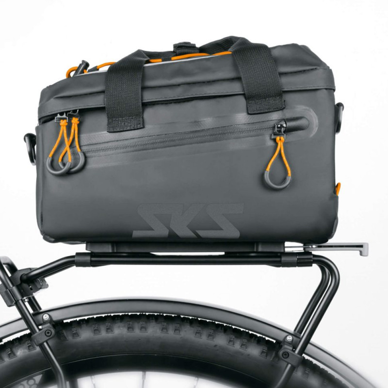 The pannier bag from the Infinity Topbag range by SKS is a practical and spacious transport accessory, designed to be attached to your bike's luggage rack. It offers 7 litres of storage space, ideal for carrying your personal belongings, tools or shopping, while maintaining a compact shape. Made from water-resistant materials, it protects your belongings from the elements and guarantees optimal durability. Its MIK mounting system allows for quick and easy installation, while ensuring perfect stability even on rough terrain. This bag also features multiple internal and external compartments for practical organisation and is equipped with a removable carrying strap for comfortable use off the bike. This bag is perfect for cyclists looking for a practical and functional storage solution for their daily commutes or rides. Technical specifications- Compatible with all luggage rack systems - Suitable for the MIK system - Easy closure - Compact shape- Multiple internal and external storage compartments