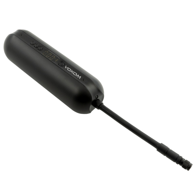 No longer want to be weighed down by a foot pump, whether at home or when travelling to run errands? Opt for this Voxom Tire Inflator EPu1! This portable compressor will serve you well. It allows you to adjust the pressure in your tyres up to 10.3 bar. A digital display allows you to read and select the correct pressure for your tyres. Compatible with Presta or Schrader valves, this mini compressor can also be used to inflate car tyres, balls and other accessories. Recharging is easy with a USB plug that can be connected at home, to a computer or in a car. With a small footprint, it can be mounted on a bicycle or slipped into a pocket for long bikepacking trips, for example. This compressor pump weighs less than 400 grams. Its 15 cm flexible hose is extremely practical and can be quickly screwed onto any wheel to adjust your pressure on the go. Thanks to all these qualities, the Voxom Tire Inflator EPu1 offers a simple, effective and compact solution for managing your tyre pressure in the best possible way. Technical specifications:- Colour: Black - Compressor with max: 10.3 bar - All types of valves (adapter included): Presta, Schrader - Adjustable desired pressure - Real-time measurement and automatic shut-off function- Flashlight function 80-lumen LED light - LCD screen - Battery level indicator - 4 selectable air pressure units - USB C connection- 5V/2A USB output - Battery: 2,600 mAh, 7.4 V - Flexible hose length: 15 cm - Portable compressor size: 5.35 x 5.35 x 17.78 cm- Weight: 380 grams - Brand: Voxom Product contents: valve adapter, ball needle, USB cable, fabric bag, bike mount, hose.