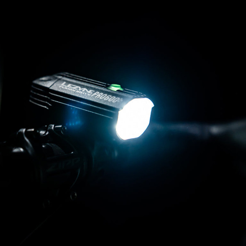 The Lezyne Drive Pro 600+ is a feature-rich front bike light designed to maximise your safety when cycling at night. With a maximum output of 600 lumens and a battery life of up to 36 hours, it provides intense, long-lasting light. It offers six output modes, including a highly visible daytime flash mode for safety in daylight. Its CNC-machined aluminium construction with cooling fins ensures a long service life and optimal thermal management. The new optics improve light distribution, while the optional GoPro mount allows for flexible mounting. With waterproof USB-C charging (cable not included), compatibility with the Infinite Light Power Pack+, and IPX7-certified waterproofing, this light is ready for all your adventures.Technical specifications - Front bike LED light - Max lumens: 600 - Battery life: 36 hours- Battery capacity: 1900 mAh - 6 modes available - Rechargeable via USB-C - Light weight: 129g - Dimensions: 82mmX45mmX41mm- IPX7 waterproof light