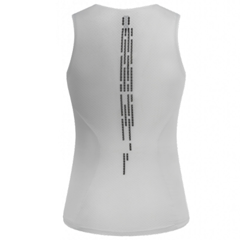 What could be better than a base layer from the famous Italian brand Pinarello to accompany you on your summer rides? This brand new sleeveless undershirt is made from cool, breathable fabric that wicks away sweat to keep you dry during intense exercise. Its ergonomic cut ensures optimal comfort, allowing you to ride for hours without discomfort. The special microfibre structure creates air pockets that help dissipate heat on contact with the skin. Weighing in at just 60 grams, this garment offers appreciable lightness for cyclists keen to reduce the weight of their equipment. The minimalist, monochromatic design blends perfectly with the rest of the Pinarello collection. Finally, this undershirt is entirely made in Italy, guaranteeing meticulous production quality. Technical specifications:- Size: XXS-XS / S-M / L-XL - Colour: white - Breathable fabric - Ergonomic fit- Made from microfibre