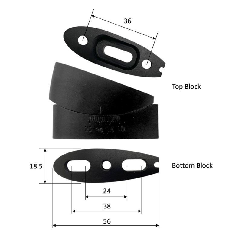 - Fits a wide range of 23 mm to 38 mm base mounting bolt patterns (hole-to-hole centres)