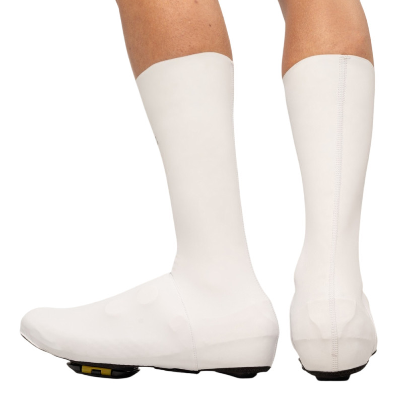 ¤Tips for use: Aquasokz are technical and fitted at the ankle. They may be difficult to put on at first, but the fabric becomes more flexible after several uses. Remember to roll them down your shins before putting on your shoes. Technical features:- Colours: White, Black - Wide silicone band on the leg for a non-slip fit - Height complies with UCI regulations- Ultra-resistant Velcro fastening - Kevlar reinforcement on the toe - Silicone grip inside the heel - Discreet reflective logo - Strategically positioned seams for aerodynamics