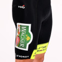 Sponsored by Materiel-velo.com, the Wagner Bazin team competes in major races on the European calendar, particularly in Belgium and France. Led by Loïc Vliegen, Pierre Barbier and Quentin Bezza, the team rides in high-quality clothing from Veloplus. These cycling shorts are made from high-quality breathable fabric that offers excellent support and a perfect fit for pedalling freely, even on long rides.Complementing the WB team jersey or more classic outfits, these shorts feature a hem and silicone grippers on the legs for optimal stability. These shorts are designed with mesh straps with finished edges for maximum comfort. With all these qualities, the Veloplus Wagner Bazin cycling shorts are the right choice for fans of the Wagner Bazin team or amateur cyclists looking for high-performance, stand-out cycling shorts. Technical specifications:- Colour: Wagner Bazin 2025