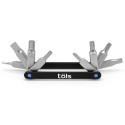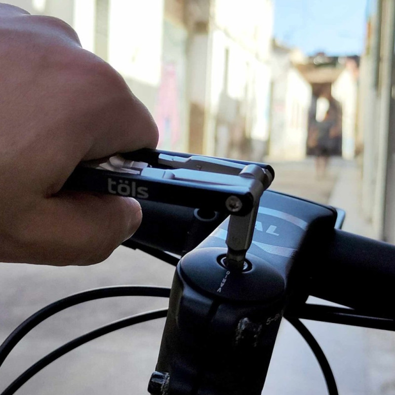 Compact, lightweight and indispensable, the Töls Aina 8 is designed for cyclists who want the essentials without the bulk. It includes the basic tools needed for quick adjustments or minor repairs during your bike rides. Its stainless steel construction ensures strength and durability, even with intensive use. Ideal for use on the road, gravel or mountain bike, it slips easily into a bag or jersey pocket. Its foldable design optimises space while ensuring excellent grip. It's the perfect emergency tool for peace of mind when cycling.Technical specifications - 8 essential functions - Allen keys: 2 / 2.5 / 3 / 4 / 5 / 6 mm - Phillips and flathead screwdrivers- Stainless steel body, aluminium finish