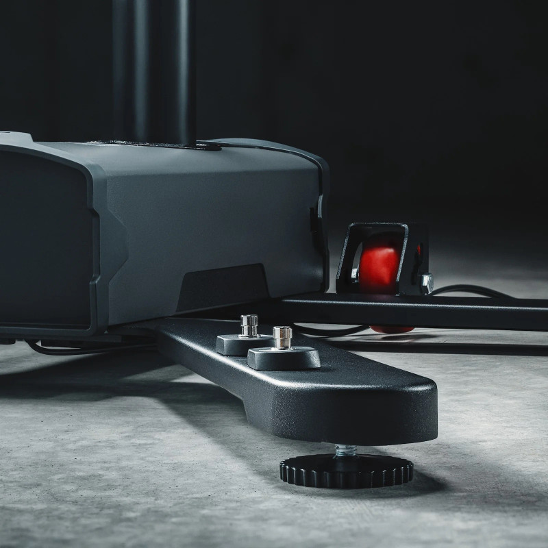 Easy transport and installation: integrated castors, compact design (easy to move around the workshop) and simple assembly in 20 minutes with the tools provided. Technical specifications: - Weight: 24.5 kg- Package dimensions: 95 x 23 x 45 cm (62 lbs) - Floor space: 71 x 71 cm - Power supply: 220–240 V ~ 50 Hz – 2A max- Compatibility: Feedback Sports accessories (tool tray, Pro wheel centring device – available summer 2025)