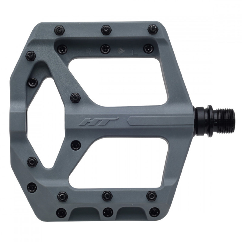 If you're looking for stylish new pedals for your mountain bike, these HT Supreme-C PA-32A pedals are just what you need. Featuring a low-profile design with a wide reinforced nylon platform, each pedal offers the perfect balance of lightness, performance and reliability. These pedals have a concave profile to make it easier to place your foot and offer greater comfort while riding. This pair is fitted with high-precision sealed bearings and superior quality DU bushings to provide smooth, durable rotation with good protection from the elements. These pedals, available in a dozen colours, are based on an oversized 12 mm axle for greater rigidity and strength. The 18 replaceable steel pins ensure total grip, even in the most demanding situations on mountain bike trails. Technical specifications:- Colours: Off-white, Light blue, Dark blue, Grey, Neon yellow, Black, Olive, Orange, Red, Pink, Green, Purple