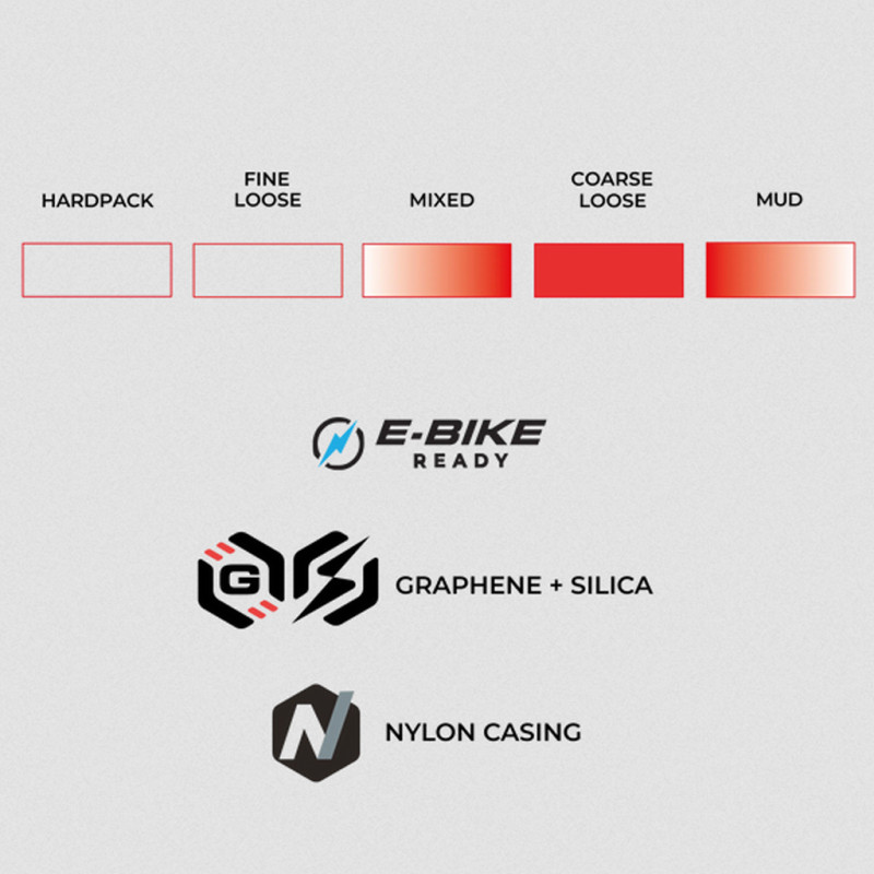 - Graphene + Silica compound: high grip, low resistance, high durability