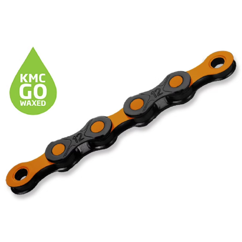 The DLC series of bicycle chains are distinguished by their high scratch resistance, thanks to four exclusive processes: a TiCN coating, NP nickel plating, careful polishing and heat treatment. These techniques ensure a chain that is smooth, robust and durable. Combined with the special KMC GO wax formula, these chains optimise pedalling efficiency while doubling their longevity. Compared to conventional lubricated chains, KMC GO Waxed chains offer better protection against dirt and impurities. This makes them easier to maintain, significantly extending the life of your bike's drivetrain and saving you money.Available in several colours, the DLC series chains combine performance and aesthetics to perfectly match the style of your bike. Technical specifications:- Advantages: High surface hardness - Dimensions: 1/2" x 11/128" – Length: 126 links - Maintenance frequency: - Road: every 250 km or once a month - Mountain biking/intensive use: every 100 km - Cleaning: dry cloth + brush, including sprockets, chainrings and rollers. - Reapplying wax: On a dry chain, without wiping off the excess