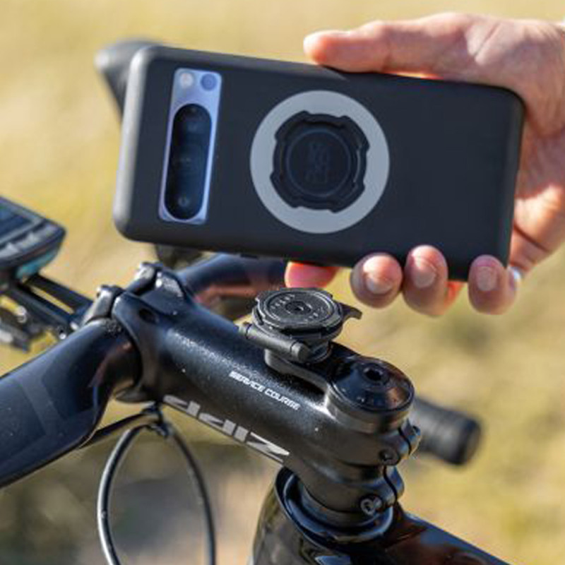 - Includes: Mount, fixing screws, Allen key - Material: CNC aluminium + reinforced composite insert - Secure attachment with patented double locking system - Discreet, central integration on the bike - Quick and easy installation- Compatible with Quad Lock accessories - Colour: Black anodised - Use: Road, gravel, mountain bike, city bike - Brand: Quad Lock