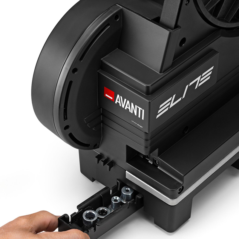 The Avanti with Zwift Cog and Click is Elite’s smart home trainer that combines high-level performance with accessibility. Zwift Ready straight out of the box, it features the Zwift Cog and Zwift Click, allowing you to immediately enjoy virtual gear changes and a seamless experience on the platform. The pre-installed Zwift Cog ensures immediate compatibility with 8- to 12-speed drivetrains, with no derailleur adjustment required, whilst the Zwift Click offers precise resistance control across 24 virtual gears, all whilst operating silently. Designed to offer premium features at a more affordable price, the Avanti features a built-in power meter with ±1% accuracy, a 10 Hz data transmission rate ideal for online competitions, simulated gradients of up to 18%, as well as Wi-Fi connectivity and black Flex Feet for a realistic and natural pedalling experience. Connectivity is comprehensive: dual-channel Bluetooth®, compatibility with heart rate belts, and direct connection to your home Wi-Fi network with automatic updates. Automatic calibration and two standalone modes allow you to train even without a power supply or app. Finally, to get you off to a good start, Zwift enhances the experience with special offers and programmes dedicated to new users. Technical specifications: - Gear compatibility: 8 to 12 speeds (via pre-installed Zwift Cog, no derailleur adjustment required)