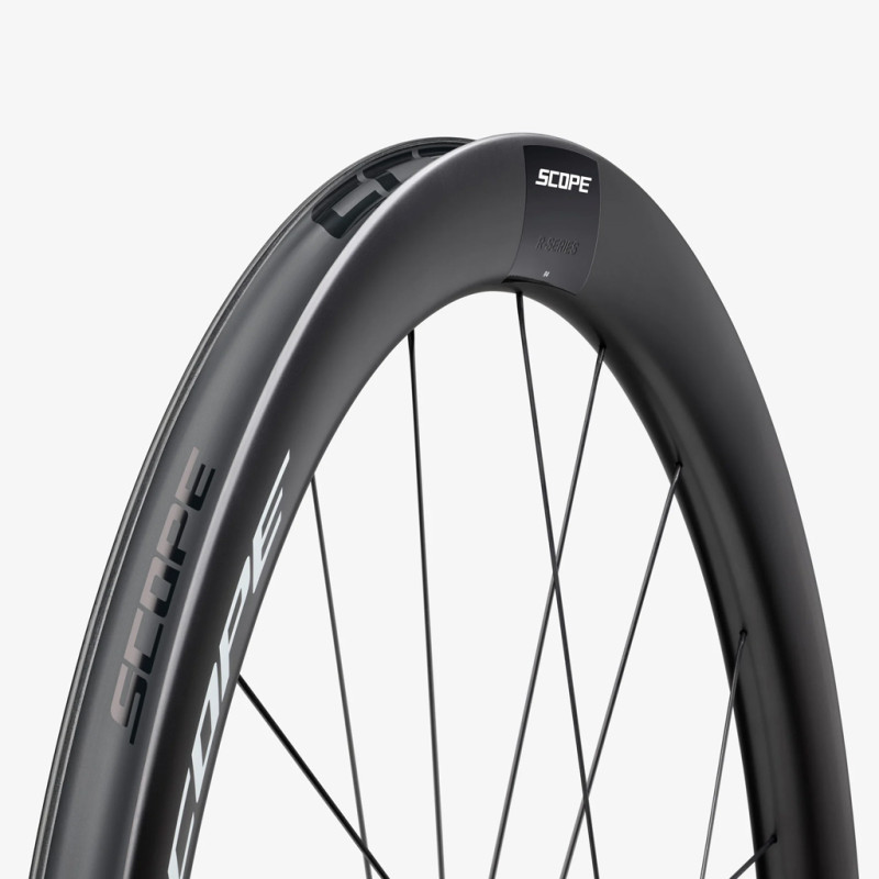 Based on the same expertise as the high-end Artech wheels, these Scope Cycling Race R4 wheels guarantee optimal performance with algorithm-optimised aerodynamics technology. With their 45 mm profile, they are designed for demanding cyclists who want to put out maximum power on the flat, on hills or on mountain passes. Designed to excel in both competition and training, this lightweight pair (1349 g) offers exceptional lateral stiffness and good durability. Its 23 mm internal width hook-type rim is optimised for 28 mm tubed and tubeless tyres, offering a perfect balance between rolling resistance, efficiency and comfort. These Scope Cycling Race R4 wheels are reinforced with carbon in specific areas, particularly around the spoke holes on the inside of the rim, for greater strength and stiffness. The hub features the Diamond Ratchet SL system, comprising a titanium component covered with a carbon coating to ensure direct engagement and increased durability. Technical specifications: - Discipline: road