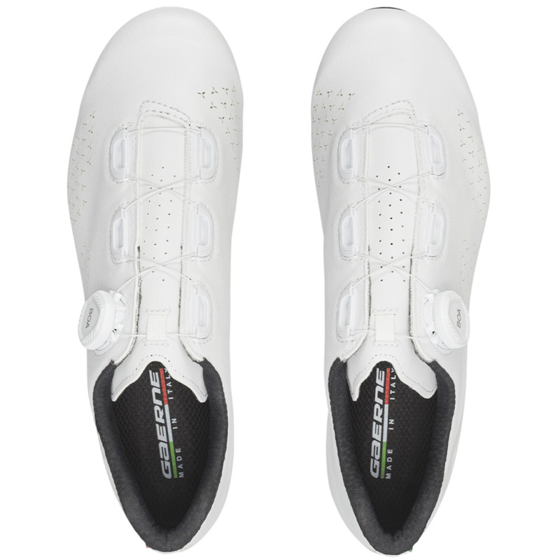 The Gaerne G.Sprint+ road cycling shoes are designed to perfectly mould to the anatomy of the foot, offering an excellent balance between performance and comfort. Their perforated microfibre upper ensures optimal breathability and effective ventilation to keep feet cool and dry. Inspired by models from Gaerne’s professional range, they feature a micro-adjustable BOA L6 closure system ensuring a precise fit without pressure points. The padded Comfort Fit tongue, non-slip heel counter and breathable EPS insole with anatomical support ensure stability, lasting comfort and efficient pedalling on every ride Technical specifications: - Comfortable road cycling shoe