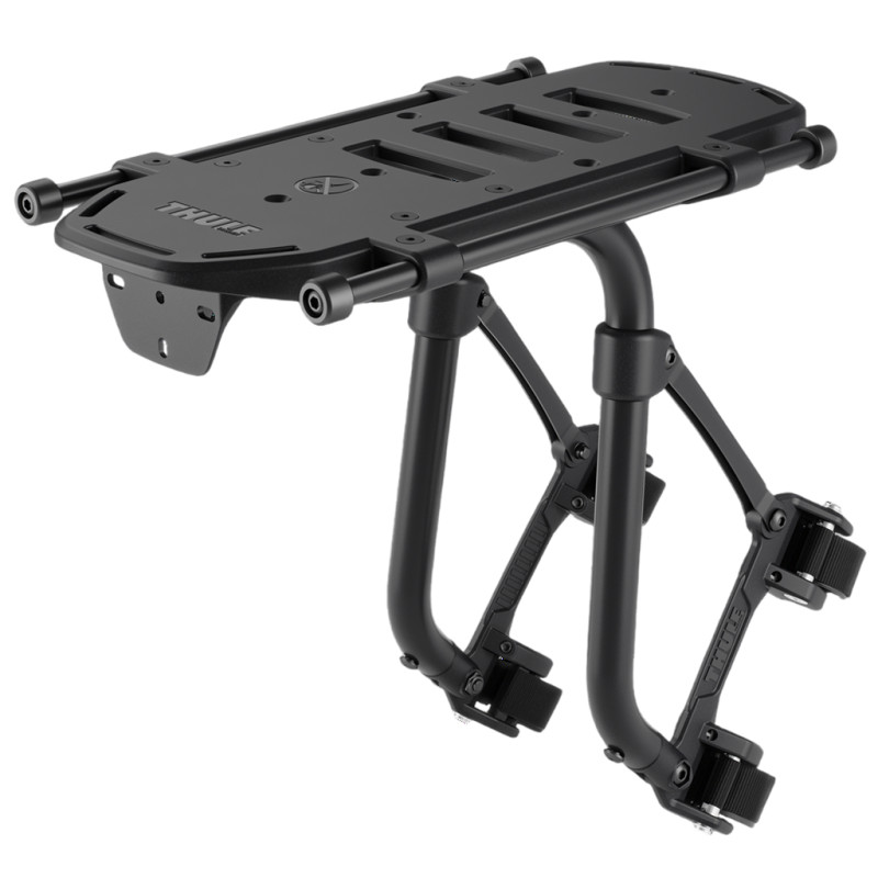 Turn your bike into a reliable travel companion with the Thule Tour Rack, the luggage rack that fits almost any model: mountain bike, road bike, gravel bike, e-bike or city bike. With its innovative mounting on the rear seat stays or front fork, its featherweight design at just 1.1 kg and a load capacity of up to 11 kg at the rear (10 kg at the front), it offers an ultra-stable and secure platform for your panniers, baskets or bikepacking gear, even on the most demanding trails. Made from aluminium and nylon, this rack effectively protects your bike’s frame thanks to its non-slip pads and grips that prevent any gear from shifting. Perfect for daily commutes, rides or bikepacking adventures, it integrates seamlessly with the Thule Pack ’n Pedal system and most panniers on the market. Versatile, lightweight and indestructible, this rack is the ideal choice for cyclists seeking adventure. Technical specifications: - Colour: Black