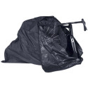 The Evoc Bike Cover Road is the ideal solution for transporting your road or gravel bike with ease when travelling by train or on public transport. Lightweight, compact and easy to store, it allows you to turn your bike into luggage once the front wheel has been removed – handy when transporting a fully assembled bike is not permitted (on high-speed trains such as the TGV or ICE, etc.). Made from high-quality 100% polyamide ripstop fabric, it effectively protects the frame from scratches and dirt during transport. This unpadded cover features specific protection for disc brakes as well as a small pocket for the axle and tools. Weighing just 500 g, it folds easily and slips into a bag or suitcase once you reach your destination. A practical, smart solution that complies with rail regulations, allowing you to travel with your bike with peace of mind. Technical specifications: - Use: Train and public transport