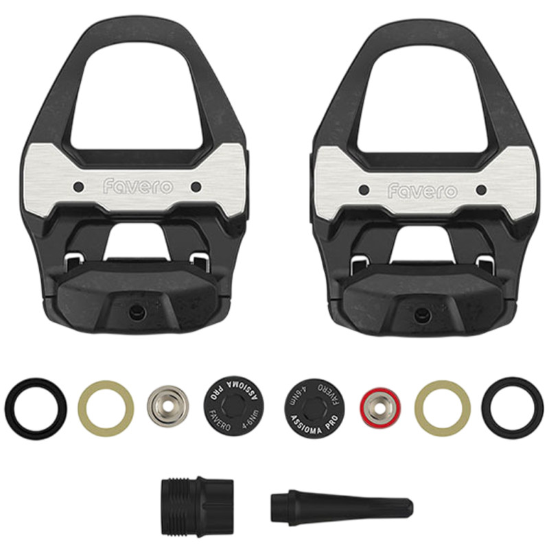 If you’ve damaged or broken the pedal bodies of your Favero Electronics Assioma PRO RS power meter, these replacement parts are for you! Extremely lightweight, these bare pedals without a sensor feature a sleek design, with a Q-Factor of just +53 mm and a stack height of 10.5 mm. These pedals are compatible with Shimano SPD-SL cleats. Technical specifications: - Kit contents: 2x pedal bodies for Assioma PRO RS, 1x end cap, 1x screw cap (black), 1x oil seal, 1x axial washer, 1x lubrication kit