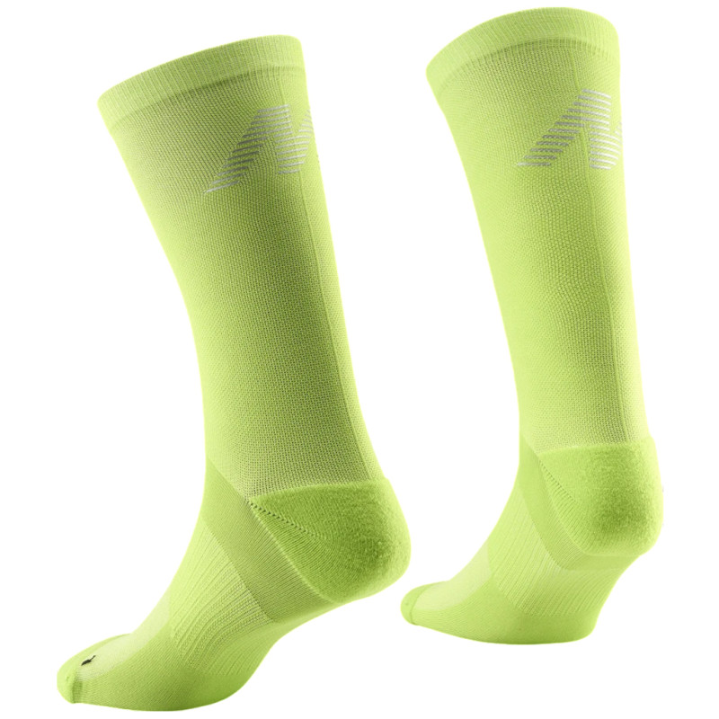 Mavic’s Hi-Vis High Socks are designed to offer breathability, comfort and visibility during your bike rides. They feature T-Care Plus fibre, renowned for its ultra-breathable and antibacterial properties, which help wick away moisture and reduce the build-up of odours during exercise. The open mesh on the top of the foot improves ventilation and comfort during rides in hot weather. For greater safety on the road, these socks feature a reflective “M” motif on the back of the leg. This detail improves your visibility as light levels drop, particularly during early morning or late evening rides. Technical specifications: - Mavic Hi-Vis High Socks
