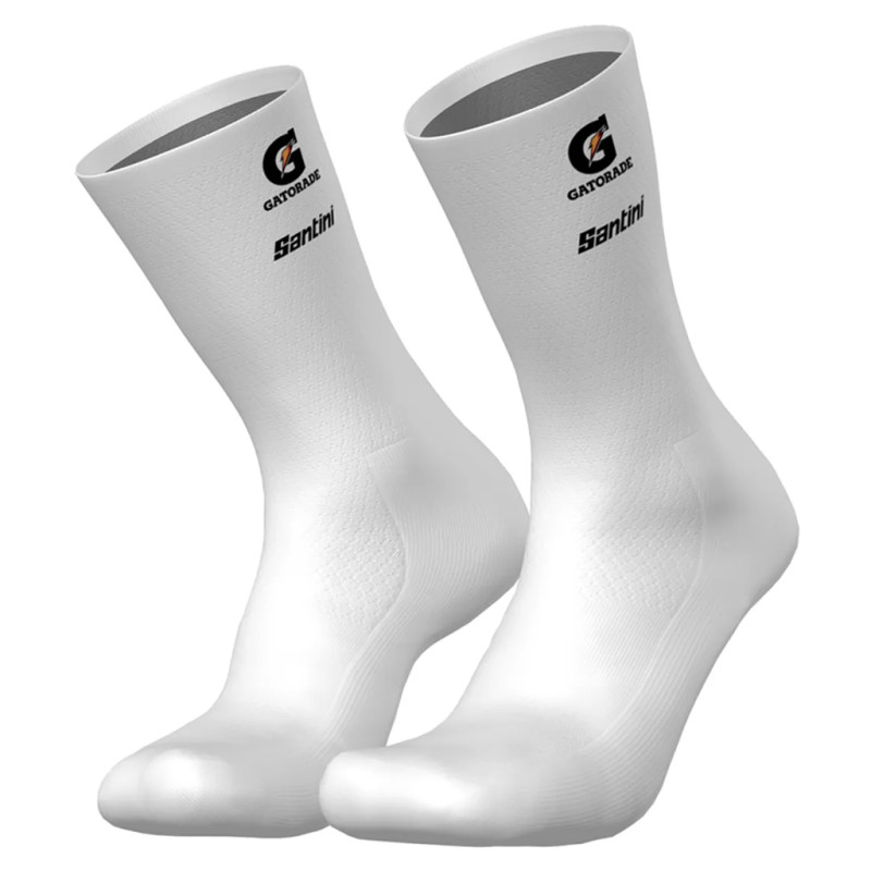 Designed in collaboration with Santini for the Lidl-Trek team, these high-cut socks combine an iconic design with top-level technical features. The reinforced arch support ensures a perfect, non-slip fit, whilst the breathable materials offer excellent moisture management and optimal ventilation, even in hot weather. Ideal for long rides, intense training sessions or races, they are the perfect addition to your kit. These socks combine durability, absolute comfort and a modern design that won’t go unnoticed. They feature a longer cuff for maximum style on the road, just like the team leaders such as Juan Ayuso, Mattias Skjelmose, Mads Pedersen, Jonathan Milan and Giulio Ciccone. Technical specifications: - Colour: Lidl-Trek 2026