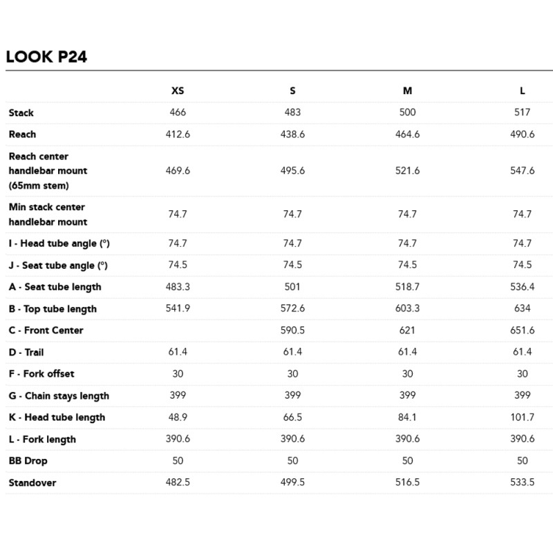 Il design del telaio integra sezioni modulari testate singolarmente per ottimizzare ogni dettaglio. La Look P24 è inoltre dotata di una forcella e di un cockpit aerodinamici, che riducono la resistenza al vento e migliorano la manovrabilità. Il telaio è progettato per adattarsi perfettamente al corpo del ciclista, offrendo una sinergia ottimale tra uomo e macchina.