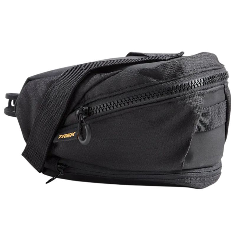 Ultra-discreta e perfettamente integrata sotto la sella grazie a un fissaggio con velcro, questa Trek Saddle Bag è la scelta dei ciclisti che vogliono mantenere un look pulito senza rinunciare alla praticità. Il suo fissaggio a basso profilo limita i movimenti. È interamente realizzata in poliestere riciclato e presenta un rivestimento idrorepellente DWR sulla parte superiore per resistere alle intemperie.Questa borsa da sella Trek offre spazio sufficiente per un kit antiforatura completo (toppe, smontagomme, camera d'aria, bombolette di CO₂ o mini-pompa), alcune barrette energetiche e un multiutensile. Le tasche interne mantengono al loro posto i tuoi oggetti essenziali. Ideale per gli allenamenti o le avventure su lunghe distanze, rimane stabile anche su strade dissestate o sentieri sterrati. La cerniera impermeabile YKK è facile da aprire e chiudere per un utilizzo semplificato. Infine, la fibbia sulla parte frontale della borsa offre uno spazio dedicato per la luce posteriore, rendendo questa Trek Saddle Bag un accessorio intelligente, pratico e sicuro per tutte le tue uscite in bicicletta. Caratteristiche tecniche: - Colore: Nero