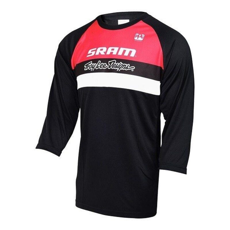Het Troy Lee Designs Ruckus-shirt is sober en stijlvol met het logo van het Amerikaanse merk Sram op het bovenstuk. Het shirt biedt goede ventilatie, met name dankzij de 3/4-mouwen die de lucht beter laten circuleren.