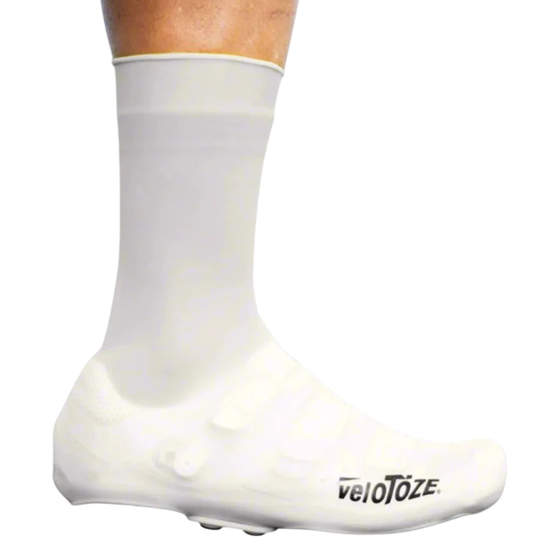 De VeloToze zijn direct herkenbaar. Bij regelmatig gebruik slijten ze vaak snel. Dit siliconenmodel heeft twee knoppen onder de voet om de pasvorm te verstellen. Het is ook een uitstekende manier om de spanning op de overschoen te beperken en deze zo te beschermen. Voor het overige bieden ze een efficiënte bescherming tegen de regen en zijn ze aerodynamisch, waardoor ze bijvoorbeeld bij tijdritten kunnen worden gebruikt. Bij een snelle wedstrijd zijn ze ook een uitstekende keuze om tijd te winnen.