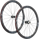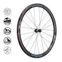 Dit paar is ontworpen in carbon en met de hand vervaardigd en staat aan de top van de technologie met ABS-messing spaken met directe pull-in zelfblokkerende kop, 6 soepele lagers met waterdichte cartridges, PRA-geanodiseerde naven en een 2-op-1 kruisbespanning.
