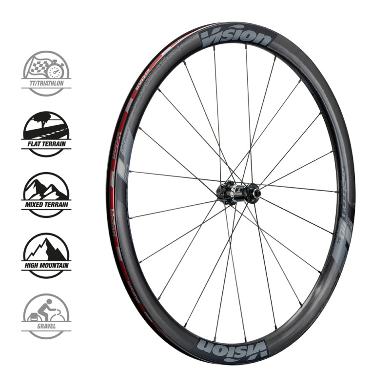 De Vision Metron 40 SL Disc-wielen zijn bekend in het professionele peloton en zijn met hun profiel van 40 mm perfect voor alle terreinen. Deze aerodynamische wielen zijn ontwikkeld met behulp van CFD-analyse en windtunneltests en zijn snel en stabiel.