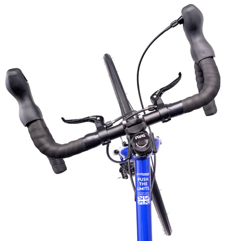 De Frog Road 61 Disc is een 24-inch racefiets ontworpen voor jonge fietsers van 8 tot 10 jaar die snel willen fietsen en vol vertrouwen vooruit willen komen. Zijn lichtgewicht aluminium frame (9,2 kg) en kindvriendelijke houding bieden een uitstekende balans tussen prestaties, rijgedrag en comfort op het asfalt.