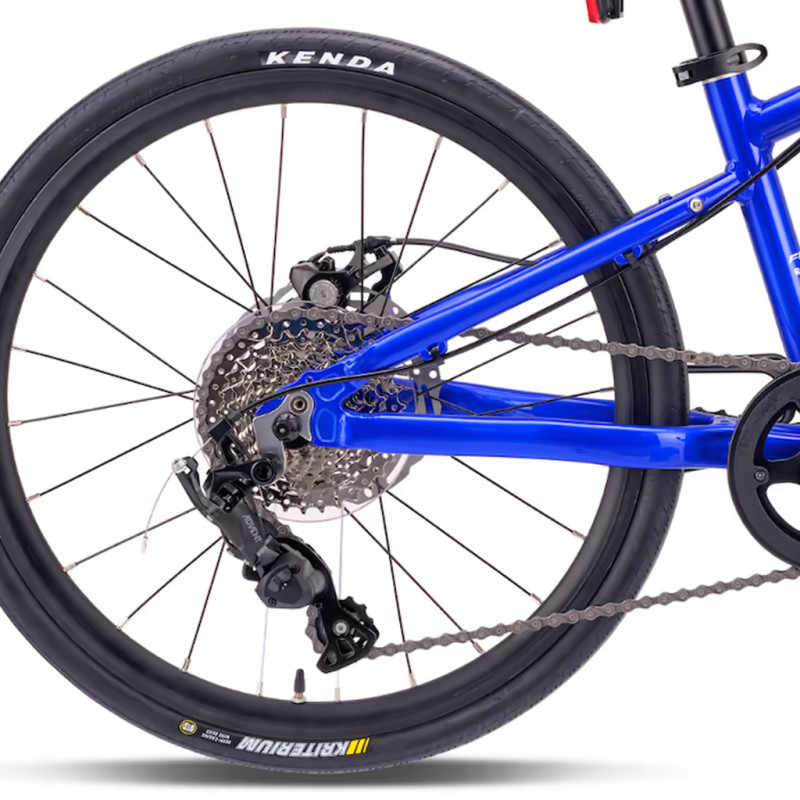 Uitgerust met een 9-speed transmissie met 11-34T cassette en ergonomische onderdelen ontworpen voor kleine handen, garandeert hij soepel schakelen en efficiënt trappen. De schijfremmen zorgen voor krachtige en veilige stopkracht, terwijl de soepele 24-inch wegbanden de snelheid en grip op rollende ondergronden bevorderen.