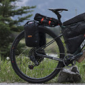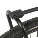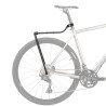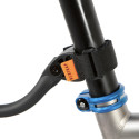 Het systeem wordt rechtstreeks op de achterste steekas bevestigd voor een stabiele en snelle installatie, aangevuld met een klittenband van 25 mm die rond de zadelpen of zadelbuis wordt bevestigd voor extra stevigheid.