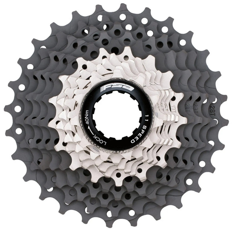Se procura uma cassete topo de gama, a FSA K-Force WE é a escolha perfeita. As rodas dentadas são fabricadas em aço tratado termicamente e niqueladas para garantir uma longa vida útil. Concebida com uma estrela em alumínio leve e resistente, esta cassete irá sempre oferecer-lhe um bom desempenho, tanto ao nível da mudança de velocidades como do rendimento na pedalada.