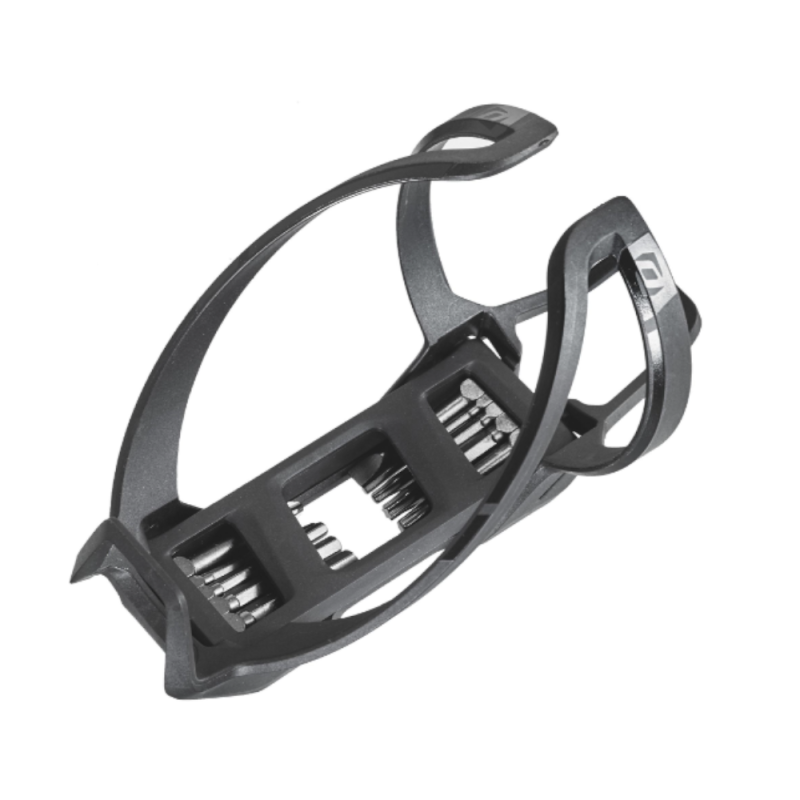 O suporte para garrafa Syncros iS Coupe Cage é um produto hiperfuncional, com uma ferramenta multifuncional de 10 funções alojada diretamente entre a garrafa e o suporte, que lhe permitirá lidar com os inúmeros imprevistos que as saídas em estrada ou cascalho podem reservar. Para pegar o seu bidon, há um acesso clássico pela parte superior.