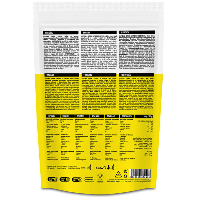 ¤Este pó 226ERS Isotonic Drink Limão é vendido em um saco de 1 kg, o que representa 50 porções.