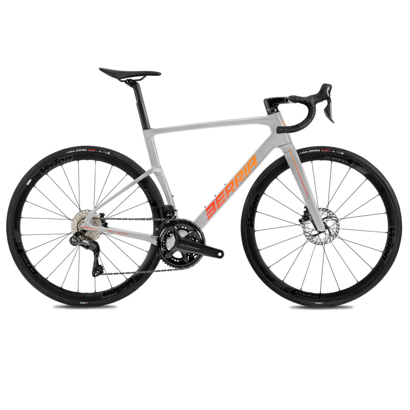 ¤O grupo Shimano Ultegra Di2 de 12 velocidades, totalmente eletrónico, garante mudanças de velocidade rápidas, precisas e sem esforço, enquanto a travagem hidráulica oferece um controlo ótimo em quaisquer condições. O cockpit Avanforce Airone integrado em carbono e as rodas Vision Trimax 35 em alumínio tubeless ready garantem uma montagem coerente, simultaneamente reativa e confortável, para uma bicicleta versátil e concebida para o rendimento.