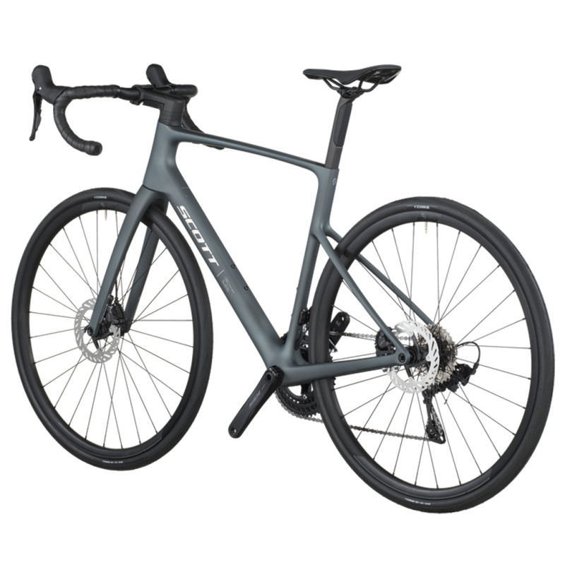 A Scott Addict 50 combina conforto e desempenho para passeios de estrada versáteis, ideais para ciclistas que desejam pedalar com eficiência sem se cansarem. O seu quadro em carbono HMF, leve e rígido, 25 % mais flexível verticalmente do que os modelos de competição, absorve as vibrações e proporciona uma condução suave em todos os tipos de estradas. A sua geometria de resistência, com um stack mais alto e um reach mais curto, garante uma posição descontraída e confortável, perfeita para longos dias no selim. A Addict 50 aceita pneus até 38 mm, combinando conforto e versatilidade em estradas rápidas ou caminhos mistos, sem comprometer a reatividade. Equipada com a transmissão mecânica Shimano 105 de 2x12 velocidades, garante mudanças de relação precisas e fiáveis, enquanto os travões hidráulicos e as rodas Syncros RP2.0, combinados com os pneus Schwalbe ONE de 34 mm, oferecem segurança, estabilidade e desempenho. Com um peso de 9 kg, esta bicicleta oferece um excelente equilíbrio entre leveza, conforto e desempenho para passeios desportivos ou mais descontraídos. Características técnicas: Quadro: